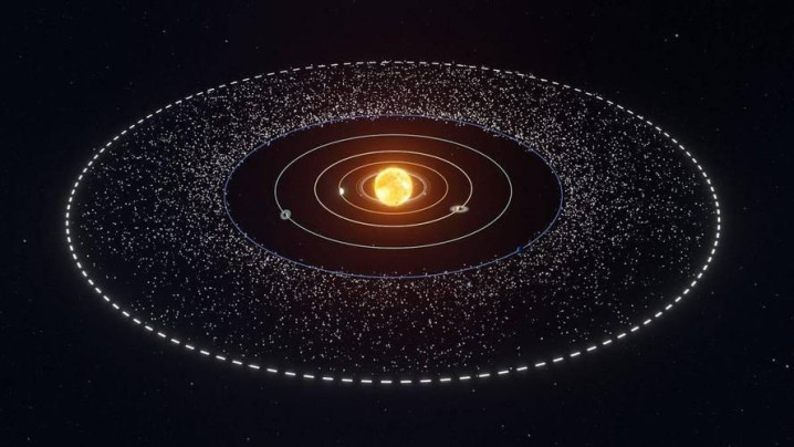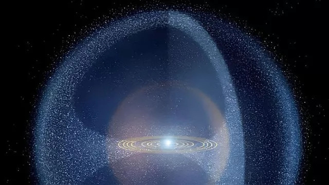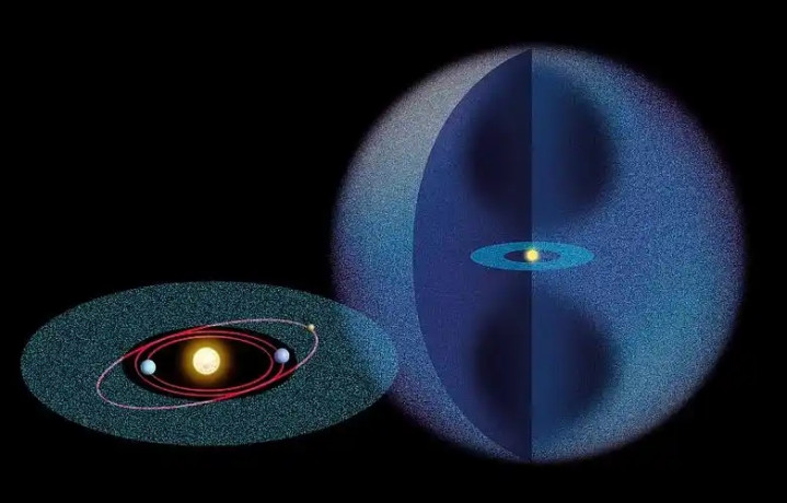 奥尔特星云是围绕太阳系存在的一个巨大球形云团,由荷兰天文学家简·亨德里克·奥尔特于1950年提出而得名。在1927年的时候,他通过分析恒星运动数据,提出了银河系较差的自转动力学理论,并且建立了著名的奥尔特常数,奠定了现在银河系的研究基础,不过他最出名的还是奥尔特星云假说,在1950年的时候,他在分析长周期彗星轨道的时候发现,这些彗星无法通过太阳系内部机制解释,因此提出存在一个围绕太阳的遥远彗星云团,作为长周期的彗星发源地,这个理论不仅仅解决了彗星来源的谜题,也为后续的太阳系边缘研究提供了框架。科学家通过计算发现,奥尔特星云是一个笼罩太阳系的巨大球体云团。